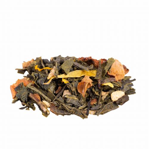 - Le thé vert China Sencha offre une base fraîche et légèrement herbacée qui équilibre parfaitement la gourmandise