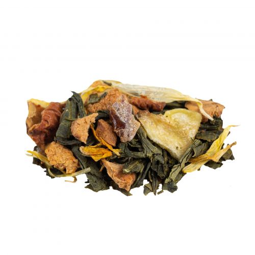 - Le thé vert China Sencha offre une base fraîche et légèrement herbacée